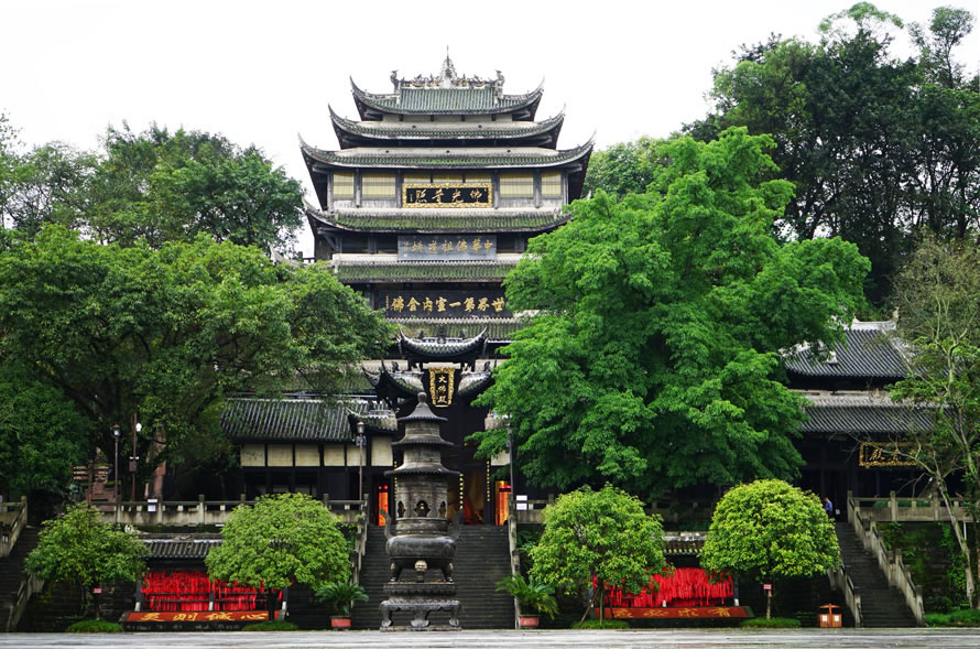 - 文化底蘊:隋唐至民國時期126龕928尊佛道教摩崖造像,世界第一室內(nèi)飾金大佛(高18.43米),2006年列為全國重點文物保護單位。