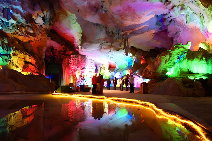 - 鐘乳石群:神龜探海、海狗觀天、雄獅倒掛、玉女獻花等形態(tài)各異的鐘乳石,搭配天然巖畫(龍、蝦、龜等),宛如地下藝術殿堂。