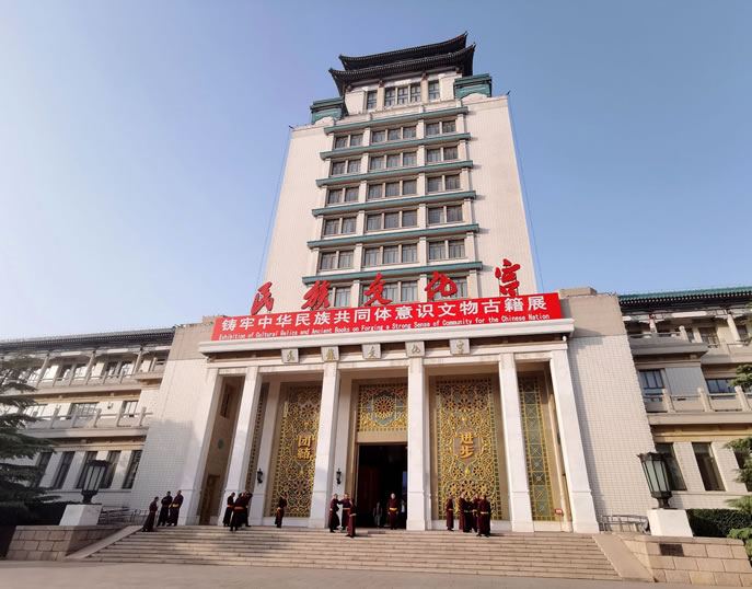 - 地址:北京市西城區(qū)復(fù)興門內(nèi)大街49號(hào),西長安街西側(cè),20世紀(jì)50年代北京十大建筑之一,被譽(yù)為“民族典籍之宮”“民族之家”。