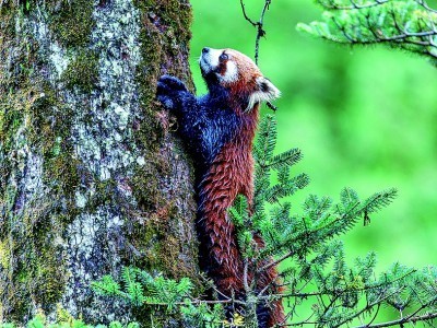 晨光穿透繚繞的云霧,喚醒了一望無(wú)際的原始森林。一只野生小熊貓不緊不慢地攀上花楸樹(shù),準(zhǔn)備享用美味的早餐。只見(jiàn)它用后腿穩(wěn)穩(wěn)地?fù)巫〈种,前爪輕輕一摟,便將紅彤彤的野果含入口中。這般極具野趣的溫馨畫面,每天都在瓦屋山國(guó)家森林公園上演。
