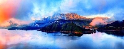 獨(dú)樹(shù)一幟的地形地貌成就了瓦屋山的蒼勁豪邁。金秋時(shí)節(jié),站在象爾山莊觀景臺(tái),看云霧從山腳下升騰上來(lái),順著桌山邊緣的冷杉林鋪成一片白色的海。象爾巖便如巨艦昂首,浮于云端。風(fēng)稍大,云海忽被撕開(kāi)一道縫,落差1040米的蘭溪瀑布橫空出世。陽(yáng)光斜照,瀑布前緩緩架起一道彩虹,水聲在云底轟鳴,宛若墜入仙境。