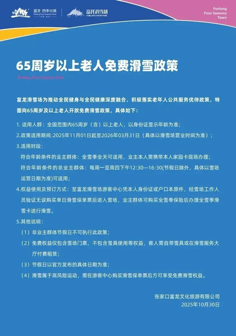 記者查詢發(fā)現(xiàn),張家口其他滑雪場也有推出針對老年群體的優(yōu)惠政策,包括滑雪半價(jià)或免費(fèi)。