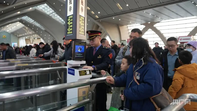 火車站工作人員正在引導(dǎo)乘客通過閘機(jī)(央廣網(wǎng)發(fā) 銀川火車站供圖)