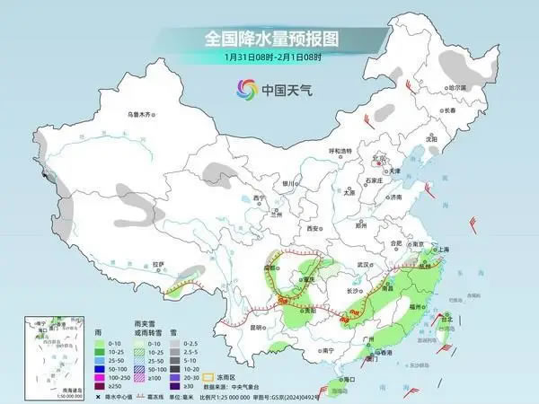 明天,我國大部地區(qū)將迎來降水間歇期,僅內(nèi)蒙古中部、新疆南疆西部山區(qū)、西藏西部和東北部、青海南部等地部分地區(qū)有小雪或雨夾雪,其中,西藏西部等地部分地區(qū)有中到大雪。西藏東南部、貴州中西部、云南東部、福建東南部、廣東東南部沿海、廣西西北部、海南島、臺(tái)灣島等地部分地區(qū)有小雨。