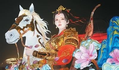 敘事主題的豐富,讓彩燈成為講述中國故事的載體。180米長的《木蘭傳奇》燈組步道上,花木蘭的颯爽英姿與家國大義徐徐鋪展,傳統(tǒng)人物的精神內(nèi)核在現(xiàn)代光影技藝演繹下直抵人心。抬眼望去,全長210米、高達32米的鯤鵬燈組震撼全場,“鯤鵬展翅”的視覺奇觀與當代載人航天、深潛等場景光影交融。福祿廣場,藻井如蓮花般旋轉(zhuǎn),光影“福”字“從天而降”落入游客掌心,讓“伸手接福”從“吉祥話”變成可觸碰的溫暖記憶。
