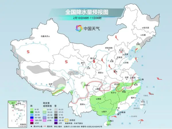 今明兩天(2月9日至10日),南方多地仍有陰雨雪天氣,貴州、湖南等局地或現(xiàn)凍雨。隨著寒潮落幕,今天起中東部更多地方將加入升溫行列,未來十天氣溫整體將在波動中回升,多地累計升幅可達10℃以上。春運期間,公眾需密切關(guān)注天氣變化,注意雨雪天氣對交通出行的不利影響。