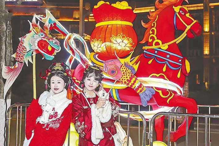 新春佳節(jié),武漢園博園成為市民和游客體驗(yàn)?zāi)晁椎臒衢T去處。(湖北日報(bào)全媒記者 馮袁玥 通訊員 徐志剛 攝)