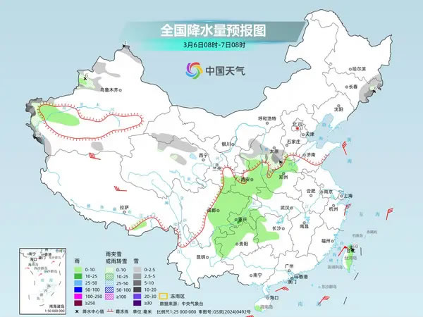 隨著京津冀等地雨雪結(jié)束,明天起至12日北方將進(jìn)入降水間歇期,大部地區(qū)以晴或多云天氣為主。不過(guò),西南地區(qū)依然多雨,6日至9日貴州、重慶、四川一帶會(huì)有頻繁陰雨,公眾外出需帶好雨具、注意防滑。
