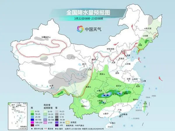 具體來看,中央氣象臺預計,今天,新疆南疆西部山區(qū)、西藏西部和南部、青海南部、川西高原北部等地部分地區(qū)有小到中雪或雨夾雪,其中,西藏西部等地部分地區(qū)有大到暴雪,局地大暴雪。貴州東部、江南大部、華南北部和西部、海南島中部、臺灣島東部等地部分地區(qū)有小到中雨,其中,江西南部、福建西部、廣東西北部等地部分地區(qū)有大雨。