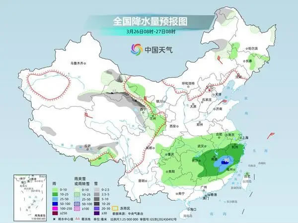 后天,新疆東部、西藏東部、甘肅河西地區(qū)、青海北部等地部分地區(qū)有小到中雪或雨夾雪,其中,青海北部、甘肅河西等地局地大到暴雪。江南中東部等地部分地區(qū)有中到大雨,其中,福建西北部等地部分地區(qū)有暴雨。