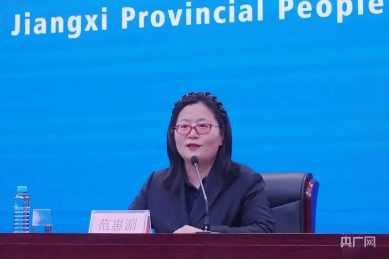 范惠湄介紹江西商旅文體健融合的相關情況(央廣網見習記者 葉昱汝 攝)