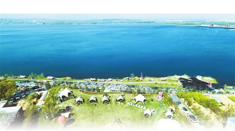 4月5日,游客在洛陽市孟津區(qū)白鶴鎮(zhèn)境內(nèi)的黃河生態(tài)廊道生態(tài)觀景平臺(tái)和觀光驛站露營休閑。黃政偉 攝